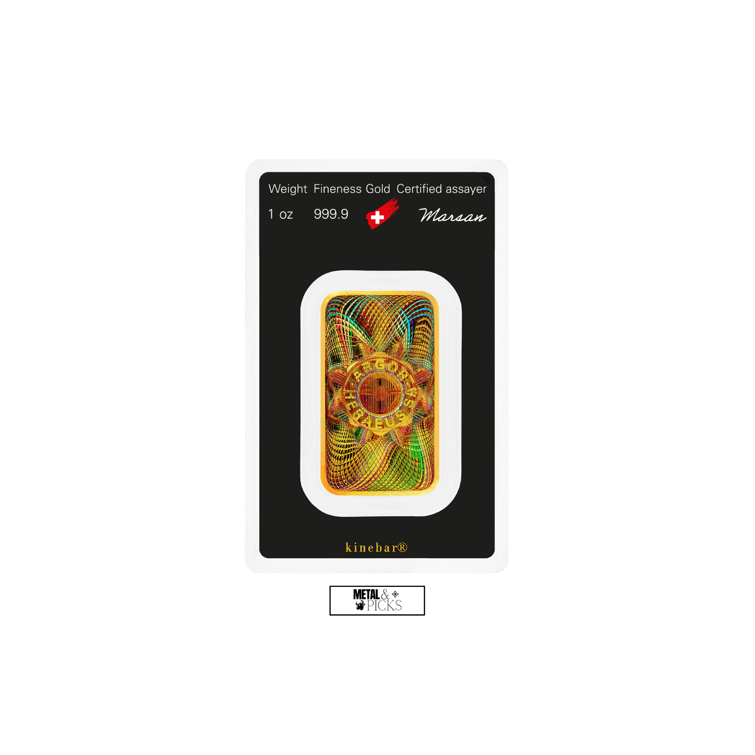 If you’re searching for a unique 1 oz gold bar, the Argor-Heraeus Kinebar stands out from the rest. Crafted from 99.99% pure gold, this exceptional piece features a striking and colorful holographic “Kinegram” design on its reverse, making it far from ordinary.