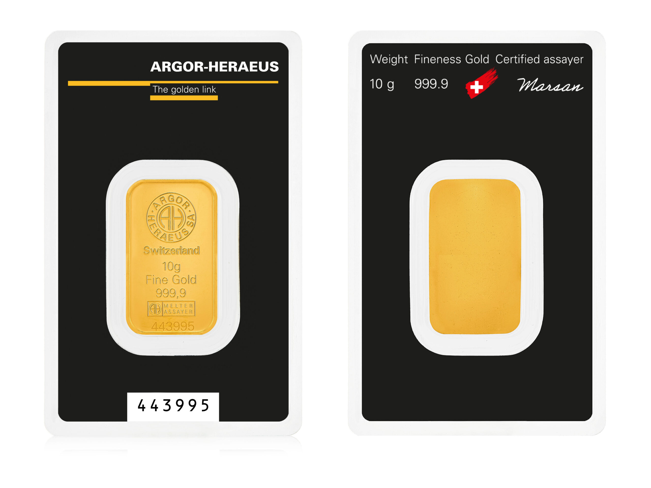 This 10g minted gold bar is produced by the renowned Swiss refiner Argor-Heraeus at its Mendrisio refinery in southern Switzerland.