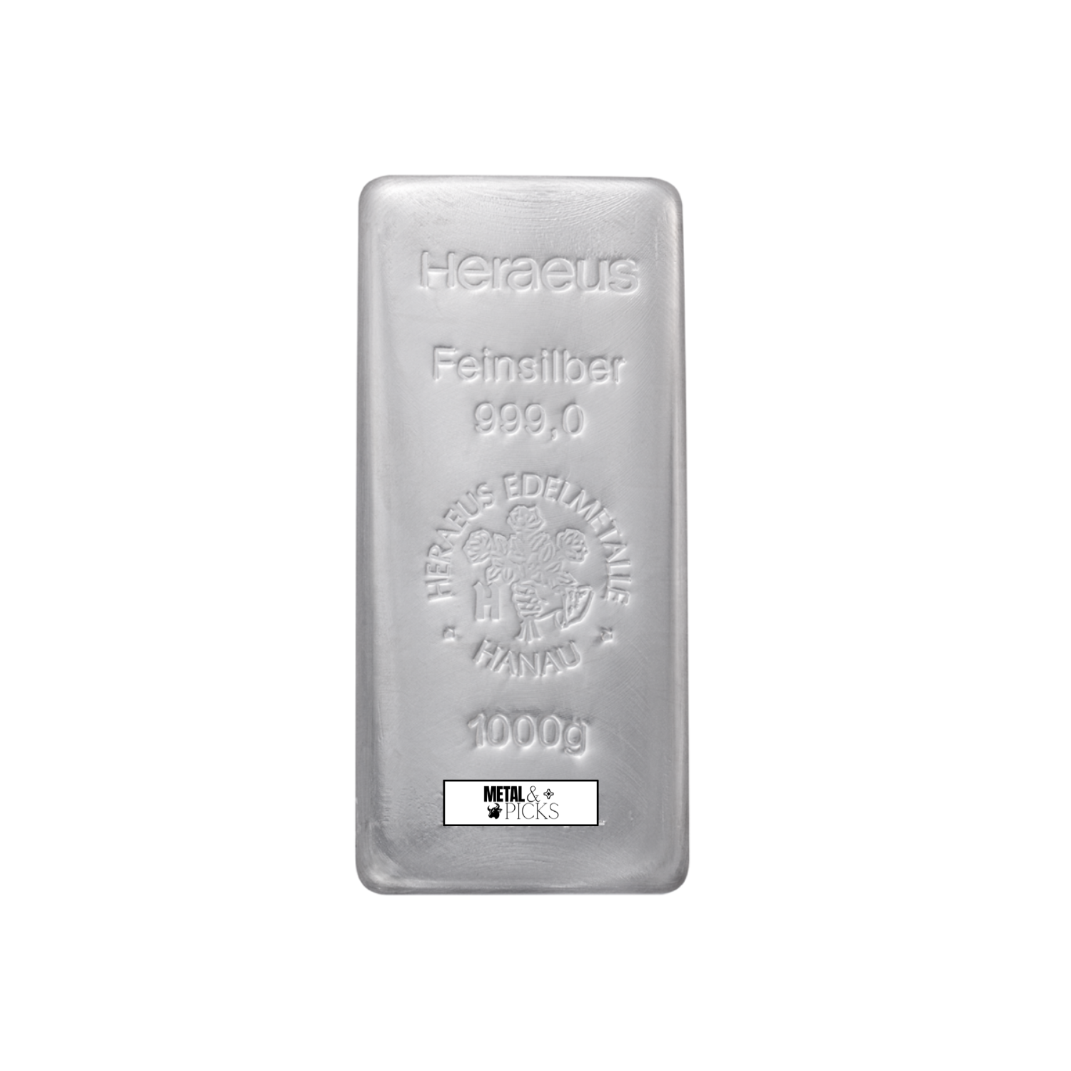 The 1 kg silver bullion bar is produced by Heraeus, a leading German precious metals refiner headquartered in Hanau near Frankfurt. This cast silver bar contains 99.9% pure silver, weighing 1,000 grams (32.151 troy oz), and features a high-lustre front surface with elegantly curved edges.